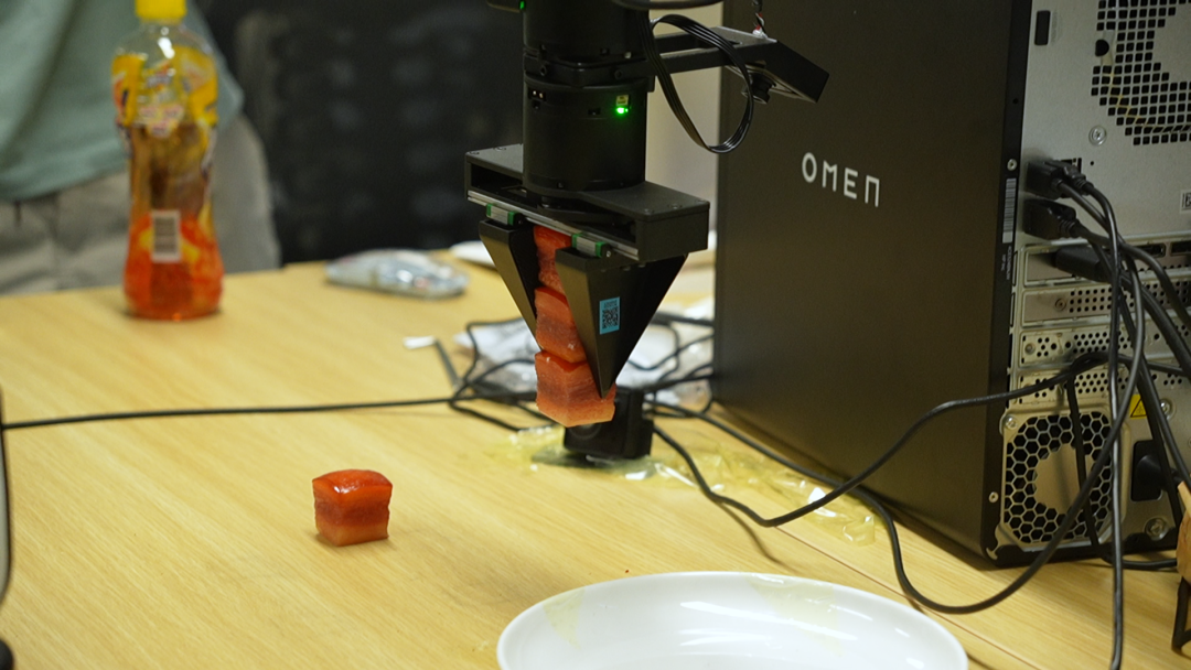 8月1日,以 “杭州有什么美食之苏东坡爱吃肉” 为主题的技术挑战赛如期举行,成为检验学员学习成果的实战平台。各参赛小组基于AIRBOT Play机械臂,围绕具身智能核心任务开展竞技,从食材识别、精准夹取到摆盘呈现的全流程操作,全面考验算法部署精度与团队协作效能。