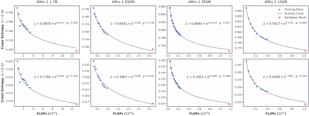 Scaling Law是智能涌现的基石。 AMix-1实现了可预测的Scaling Law,以指导大模型在算力扩展的可预测训练和规划。