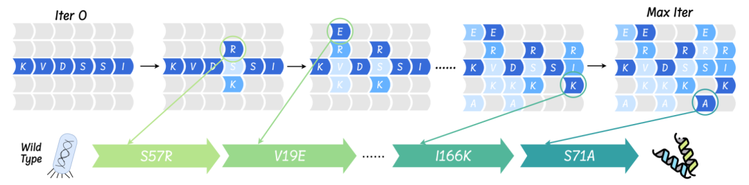 AMix-1模型在湿实验中的生成迭代和相应的变异过程