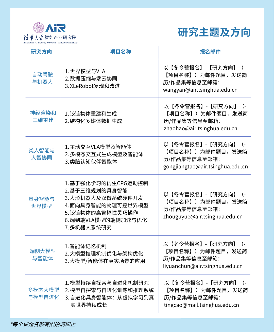 (AIR)2026冬令营开启报名,在这里您将深入学术核心,与领军学者面对面;直击产业前沿,洞悉技术落地脉络。我们期待着志同道合的小伙伴共赴一场AI深度探索之旅,共同探索智能产业的未来边界。