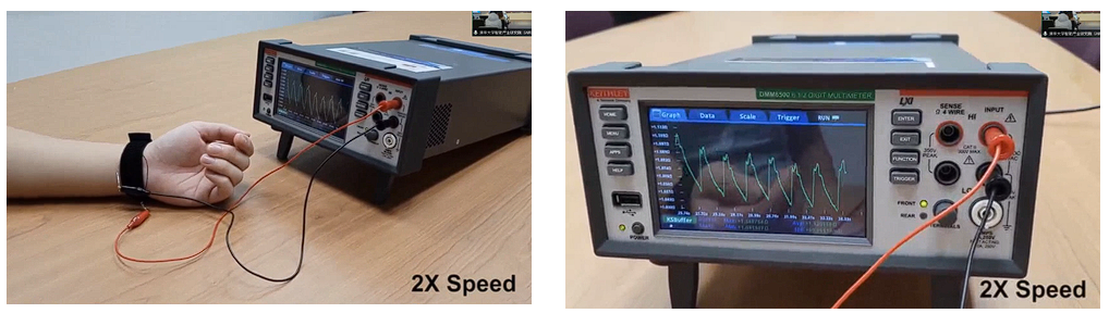 微流管传感器的应用领域广泛,特别是在医疗和健康监测方面。传感器被编织进布料中,使得在拉扯布料时可以检测到压力变化。在复健领域,当患者进行膝盖运动时,传感器能够实时监测膝盖的弯曲并在显示器上显示弯曲幅度和速度。在脉搏检测方面,传感器能够精确地记录手腕处的脉搏跳动,并以波形图的形式实时展示。除此之外,这种微流管传感器已经在智能健身和医疗健康训练中得到应用,尤其是在新加坡和印尼。用户可以将传感器绑在身上,通过相关软件监测身体状况和运动进展。