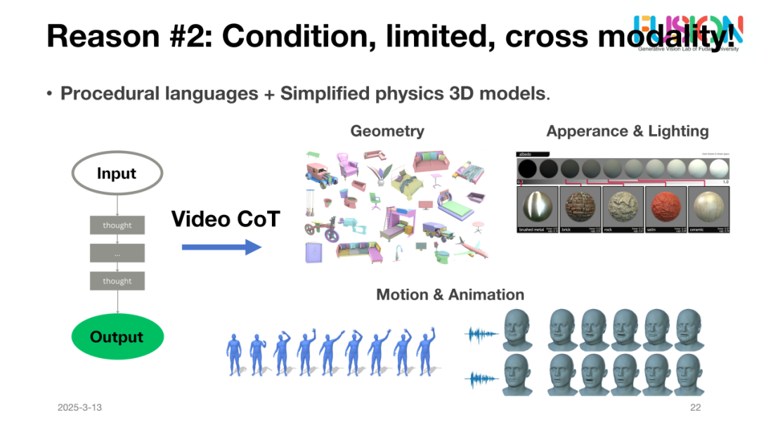 第二个挑战在于跨模态的条件限制。语言生成模型目前虽然已取得显著进展,但在视频生成领域,如何将视觉信息(如几何网格、外观和光照等)与生成模型结合仍然存在很大的难度。朱博士指出,目前的模型在条件输入的处理上仍然较为简化,具体在对视频生成模型进行深度整合时,如何合理利用几何网格、外观和光照的先验信息,成为了制约生成质量的一个关键因素。