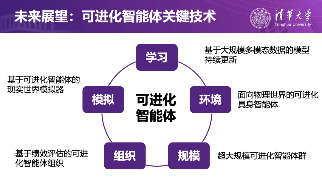 在报告最后,刘洋教授展望了可进化智能体的未来方向。他认为:在高质量标注数据逐渐稀缺的背景下,让智能体在复杂环境中自己获取数据、自己标注、自己成长,将成为人工智能的重要趋势。