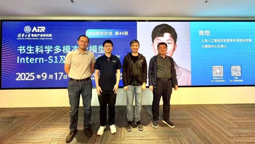 9月17日,第44期AIR学术沙龙如期举行。本期活动荣幸邀请到了上海人工智能实验室大模型中心负责人陈恺博士,为师生带来了一场题为《书生科学多模态大模型Intern-S1及关键技术分享》的深度分享。