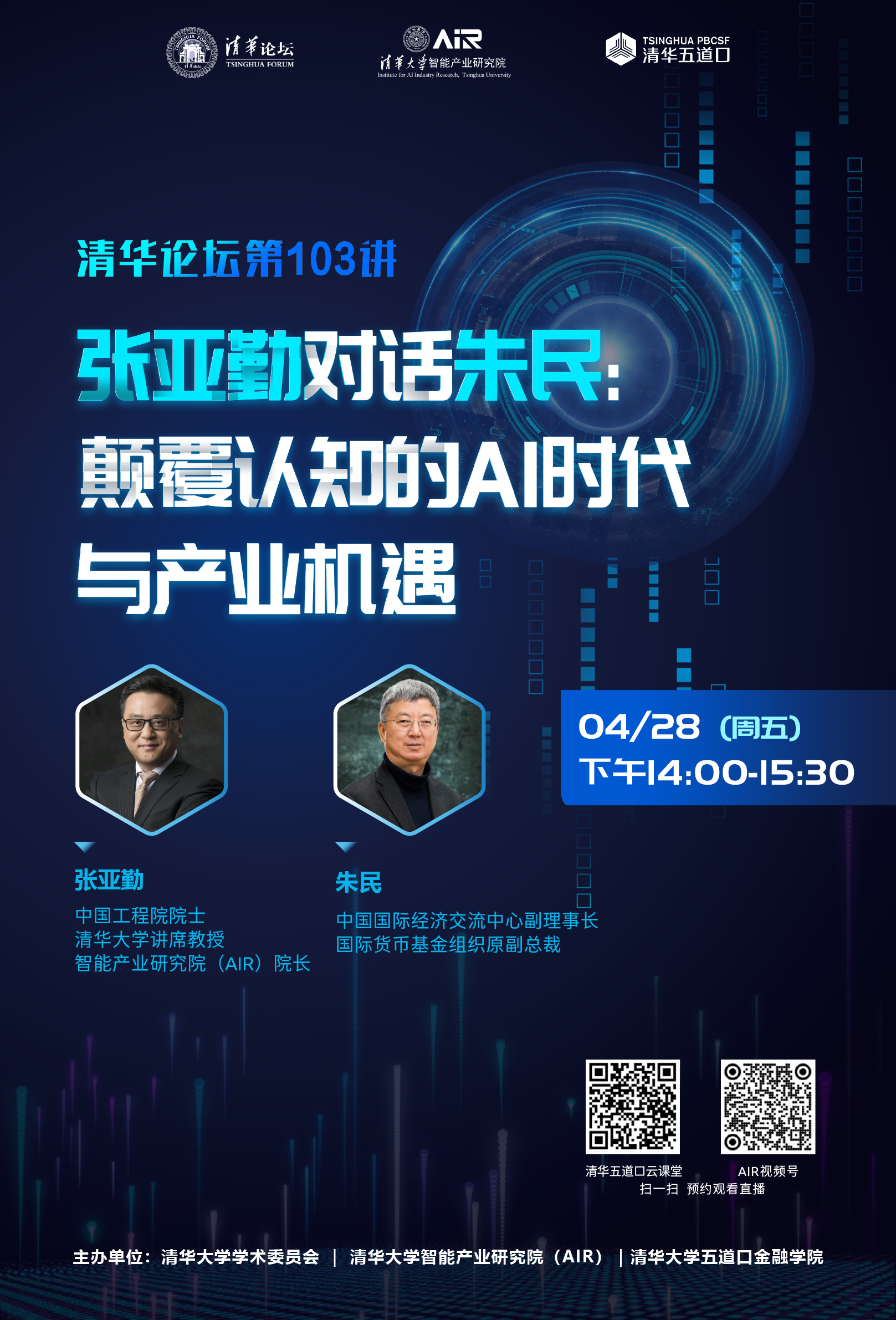 【预告】清华论坛第103讲|张亚勤对话朱民:颠覆认知的AI时代与产业机遇