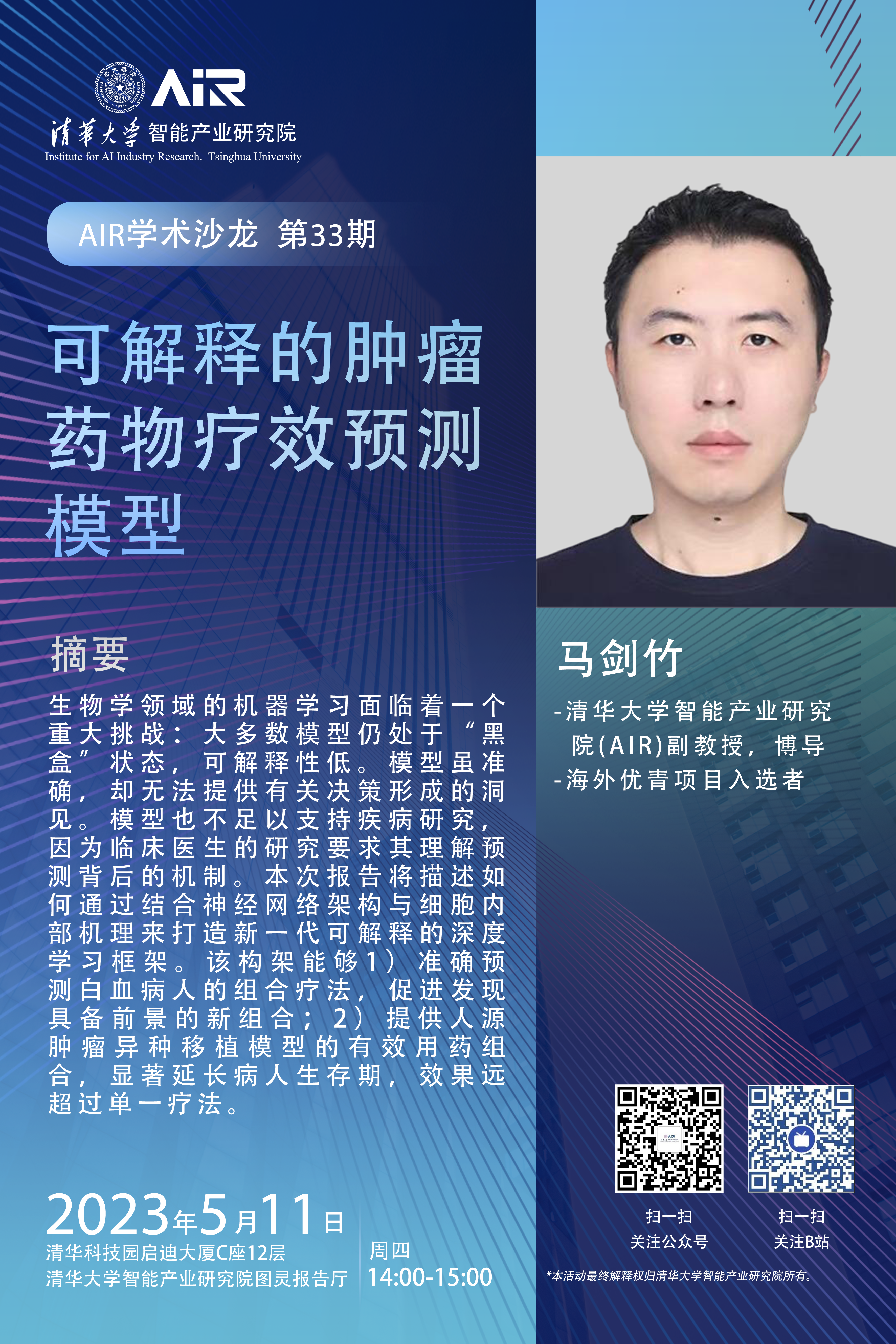 【预告】AIR学术沙龙第33期|马剑竹:可解释的肿瘤药物疗效预测模型